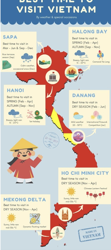 However, we will summarize the most suitable weather for visiting famous destinations in Vietnam as follows: