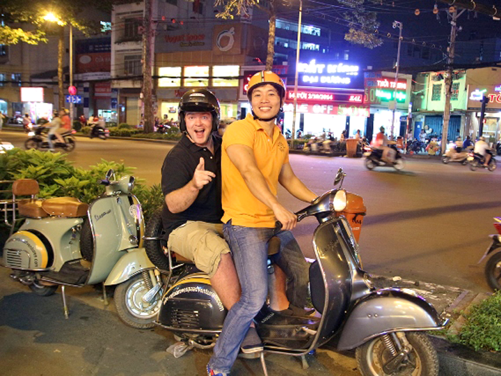 This morning you'll see the backstreets of Ho Chi Minh City like a true local - on the back of a Vespa. After a safety briefing, you'll hop on the back and hang on as your professional guide leads you around the city on a day tour. You'll pass through local neighborhoods with apartment buildings, shops, and restaurants dating to the 1960s. There will be plenty of stops to appreciate the historic architecture and do a little street photography. You'll even stop at the lively Ban Co Market, where you can sample some delicious street food.